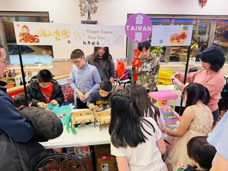 夜市遊戲同樣人氣十足,包含彈珠台、夾娃娃機、「筊杯」得大獎及兒童抽獎等,深受親子家庭喜愛,現場笑聲此起彼落,宛如熱鬧的台灣廟口。孩子們在歌聲、美食與遊戲中認識台灣文化與節慶習俗,也讓傳統在海外自然延續,對建立身分認同助益良多。