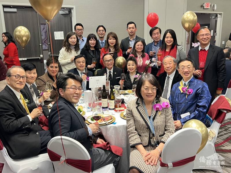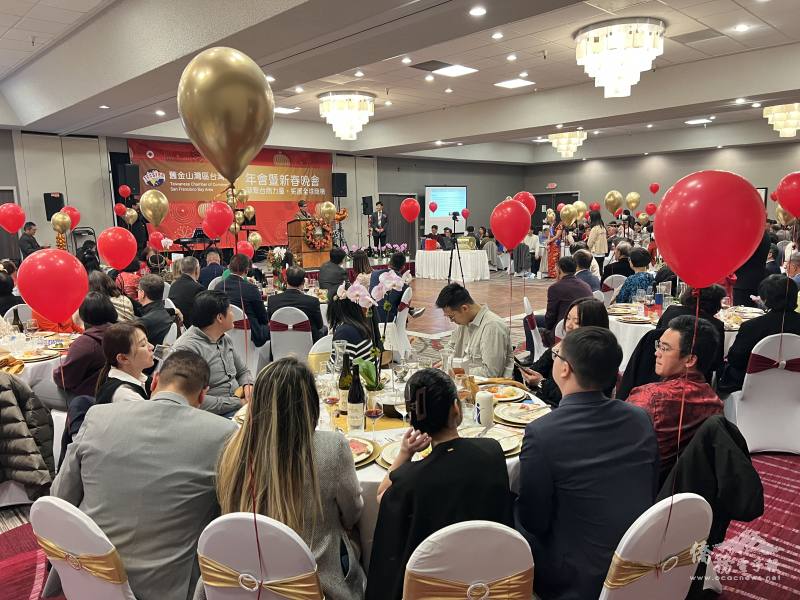 駐舊金山辦事處處長伍志翔致詞,肯定台灣商會在促進台美經濟、文化與科技交流上的努力,並祝福與會者在新的一年平安順利。金山灣區文教中心副主任蔡佳樺則感謝商會多年來加深臺美合作關係,並祝福大家新年快樂、萬事如意。