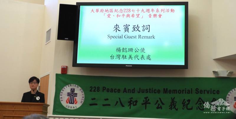 駐美代表處公使楊懿珊於音樂會現場致詞