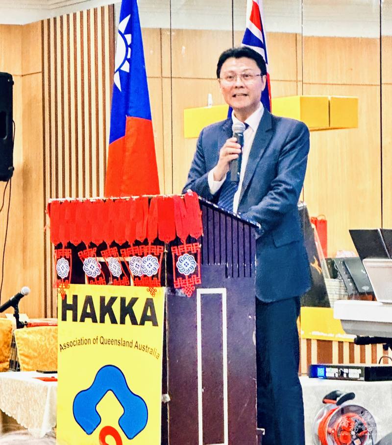 澳洲昆士蘭客家會於3月1日在布里斯本南區楓林餐廳舉辦慶祝「2026年天穿日聯歡活動暨理事會」活動,駐布里斯本辦事處處長范厚祿夫婦偕昆士蘭臺灣中心主任許俊湧應邀出席,客家會會長鄭仲哲、輔導會長姜如霞等,以及歷屆會長、僑務委員羅富齡、陳秋燕、徐瑞雲、僑務諮詢委員黃素珍、余謙謀、柯文耀、林淑美、廖充炳與多位僑務榮譽職人員、世界臺灣客家聯合總會前總會長伍其修、各臺僑社團會長與代表與客家鄉親及社區友人,共約250人齊聚一堂共賀佳節。