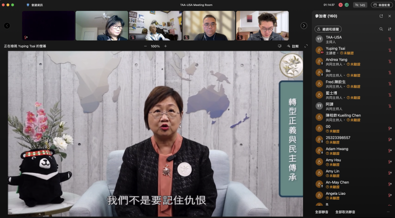 為紀念二二八事件79周年,由全美台灣同鄉會、加拿大台灣同鄉會、北美洲台灣婦女會主辦,全美台灣人權協會協辦之「2026北美洲海外台灣人二二八79周年線上紀念會」,於2月28日(美東時間晚間8時)舉行,吸引近200位北美鄉親上線參與。紀念會以「從228到今日台灣——跨越時空的記憶對話×當代見證」為主題,透過歷史見證者與轉型正義實務推動者分享,讓紀念成為面向未來的行動承諾。
