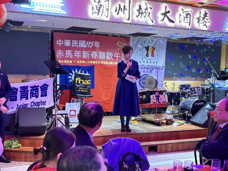 法國臺灣商會與世華工商婦女企管協會法國分會3月1日在巴黎13區舉辦「中華民國115年赤馬新春聯歡午宴」,出席貴賓包括駐法國大使郝培芝、國策顧問黃行德、世界臺灣商會聯合總會名譽總會長蔡國泰、僑務委員郭珮涵、鄭蓓斐、薛雅俶及陳中華等僑領、法國臺灣協會、法國臺灣女力新知會及法國百齡高爾夫球聯誼會等僑界及社團代表共聚一堂,齊賀新歲。