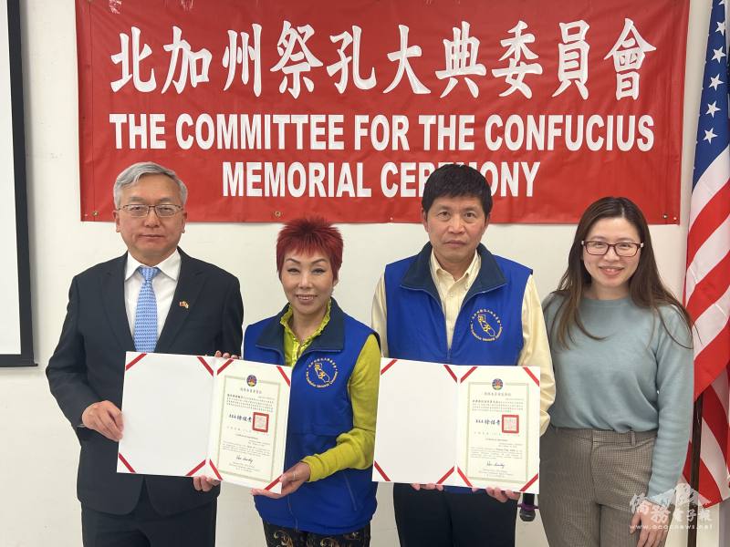 蔡佳樺感謝施光庭任內的領導與團隊的辛勞投入,指出北加州祭孔大典不僅是僑界重要文化盛事,更是展現臺灣保存傳統禮樂文化成果的重要窗口,期許新任總召在既有基礎上持續深耕,吸引更多年輕世代參與,讓儒家文化在海外持續茁壯。