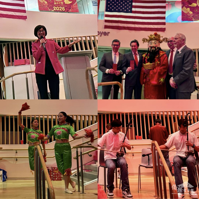 新德墨台灣商會(TCCNTM)2月28日在艾爾帕索(El Paso)主辦農曆新年慶祝晚會,北美洲台灣商會聯合總會總會長白越珠、台商資源媒合委員會主委蔣序龍與學人等應邀出席,並由新德墨台灣商會會長暨緯創全球製造執行副總賴育民親自接待,駐休士頓辦事處經濟組組長倪伯嘉亦到場支持。