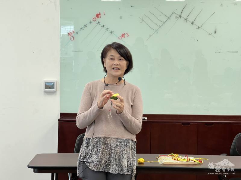 孫櫻娟分享,傳統繩結藝術是華人文化中非常珍貴的工藝之一,看似簡單的一條線,可以變化出無數美麗圖案。她希望大家在創作的過程中感受到藝術的樂趣,並將這份文化與祝福延續下去。