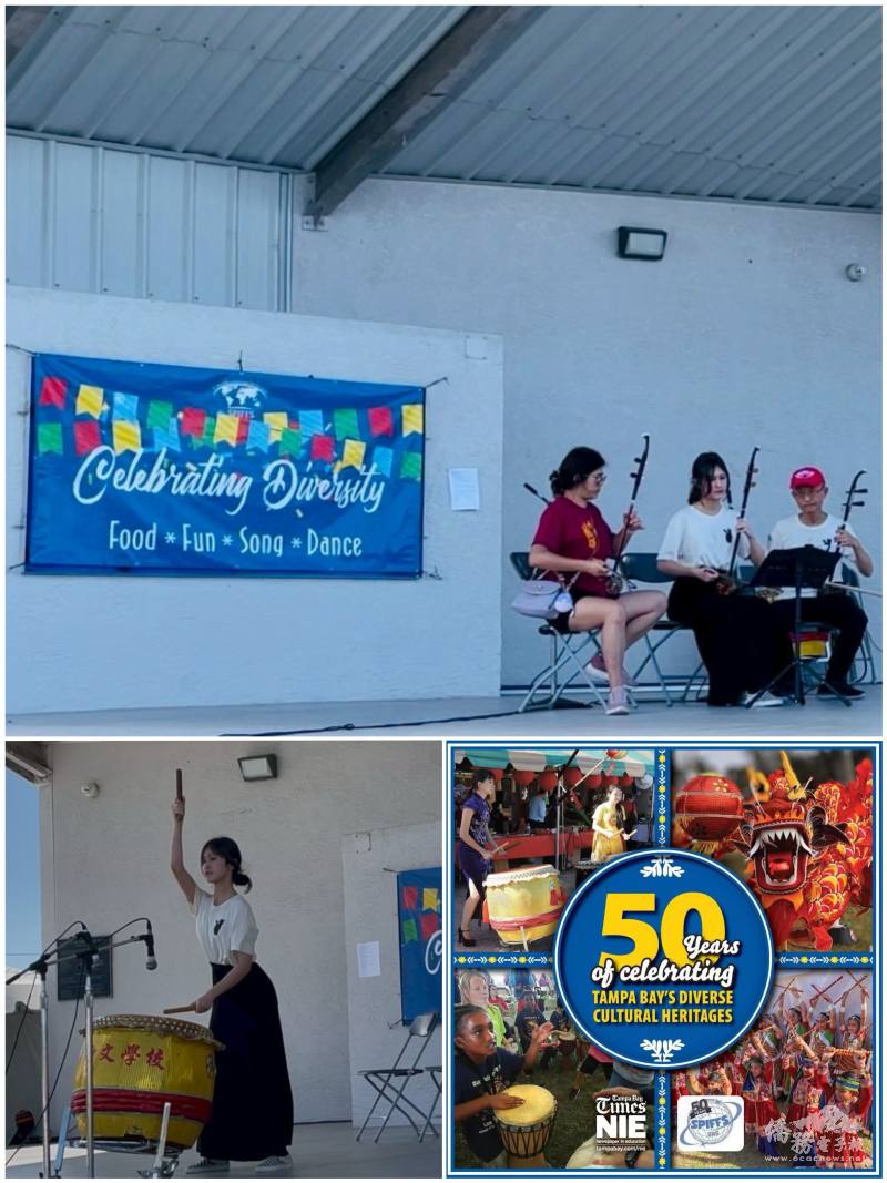 學校也在舞臺節目中帶來精彩演出。單人大鼓與二胡高級班的演奏,以悠揚旋律及充滿節奏感的鼓聲,吸引許多觀眾駐足聆聽欣賞。校長鄧敏宏向《坦帕灣時報》表示,學生勤練二胡,今日受邀在各國民眾前表演,對學生是極大的鼓勵,也藉機大力宣傳TCML。