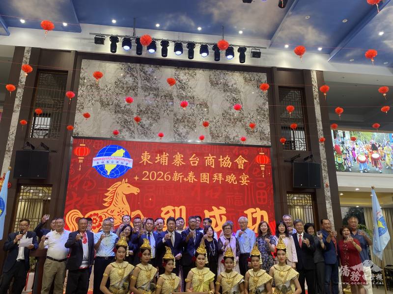 柬埔寨臺商協會3月14日舉辦「2026新春團拜晚宴」,由會長陳來埤主持,駐胡志明市辦事處處長韓國耀偕僑務組組長文君妃,及秘書陳珮語等同仁應邀出席;出席人員包括僑務諮詢委員江永興、柬埔寨臺商協會輔導會長張南蘋、理監事、會員及當地僑團代表等共約400人。