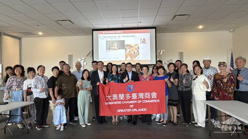 駐澳大利亞代表處秘書王俊義及李英璇(中)與臺灣原住民表演團體及西澳僑領合影
