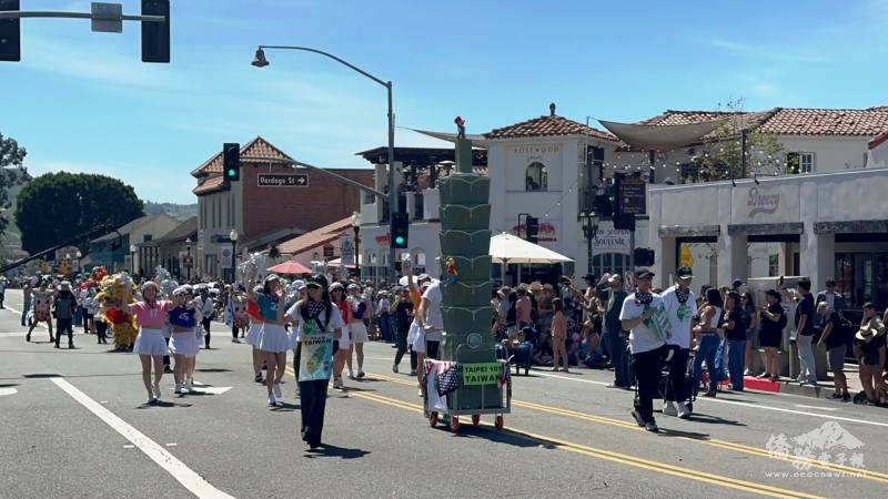 三歡市(San Juan Capistrano)第66屆2026年燕子日遊行(Swallows Day Parade)3月21日盛大舉行,美國南加州 TEAM TAIWAN 挺臺灣協會聯合橙縣、洛杉磯及聖地牙哥僑團共組「挺臺灣」(Team Taiwan)遊行隊共襄盛會。今年遊行隊伍造型及表演競賽,Team Taiwan以精心製作的「攀登臺北101花車」,以及最具臺灣元素與意象的巨型波霸奶茶風光奪冠,讓臺灣在主流社區再度頭角崢嶸。