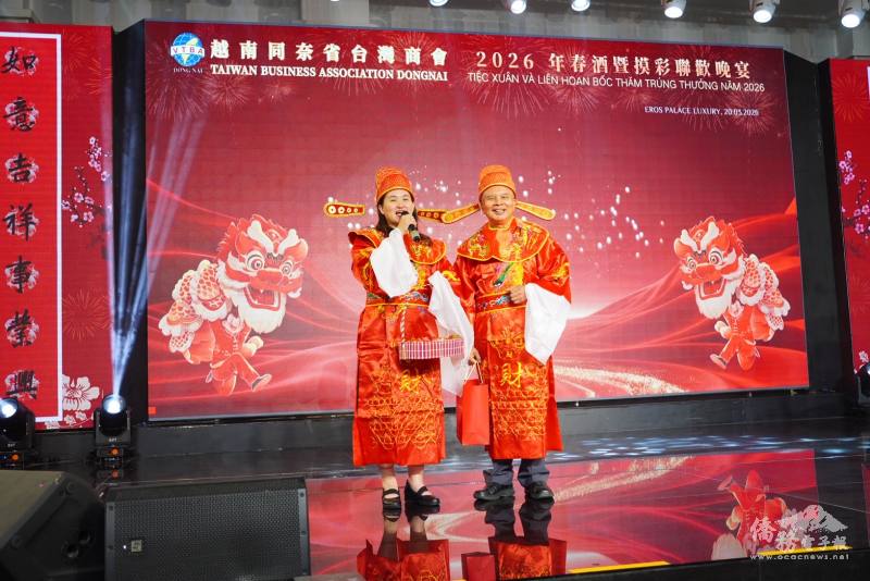 同奈臺灣商會3月20日舉辦「2026年春酒暨摸彩聯歡晚宴」,駐越南代表處大使劉世忠、前海基會秘書長高建智、駐胡志明市辦事處處長韓國耀偕僑務組組長文君妃、秘書陳珮語及辦事處同仁,僑務委員蔡文瑞、謝明輝、吳明穎、林淑莉、世界臺灣商會聯合總會名譽總會長李天柒、越南臺商總會總會長洪志華等,超過500位會員及僑界人士見證同奈臺商的凝聚力與發展成果。