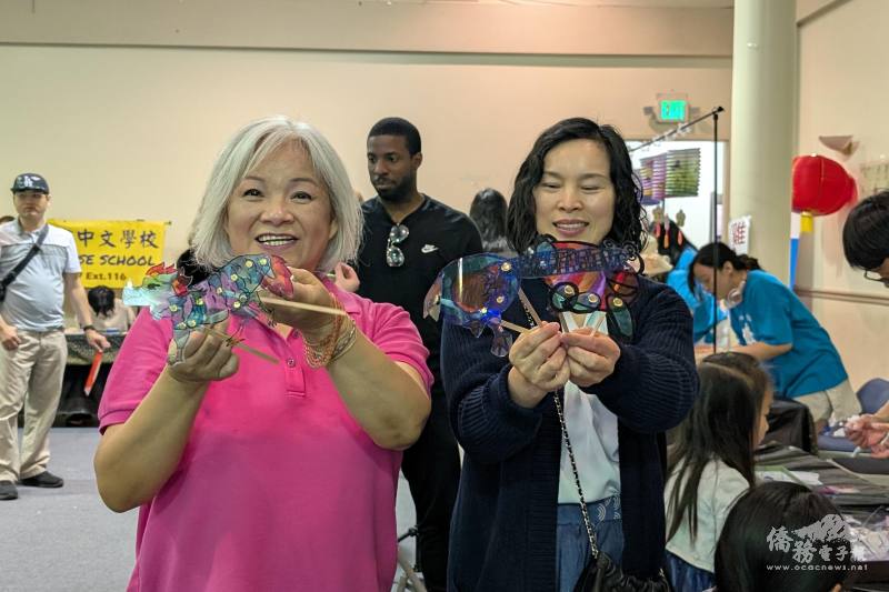 2026年洛杉磯地區「正體漢字文化節」活動負責人羅蔭葉(左)介紹皮影戲。