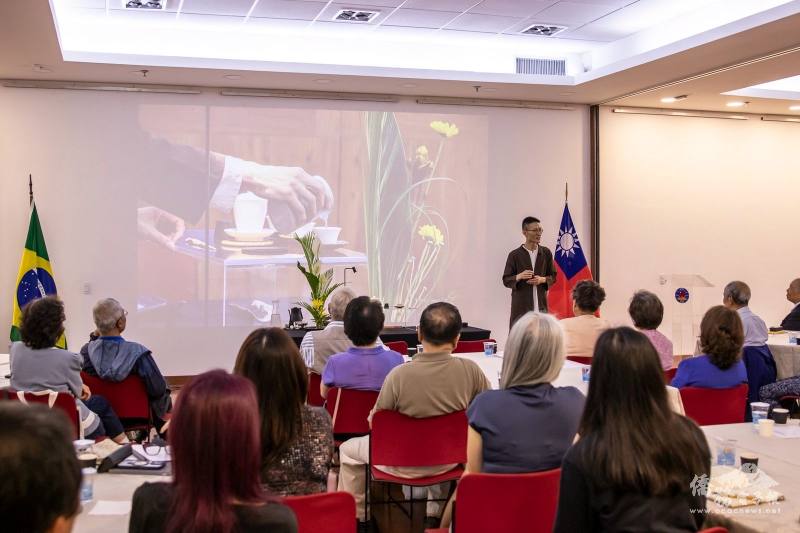 首先由僑務促進委員陳家靖分享臺灣茶文化與國民外交的實踐,現場示範泡茶、品茗,讓巴西人士認識臺灣茶文化。接著在美食文化外交環節中,巴西臺灣同鄉會會長莊海定報告9月間的臺灣美食教學示範與巴西餐飲交流情況,臺巴藝術文化交流協會會長謝如欣,臺灣文化協會會長簡金輝提出和巴西主流社會交流的作法。