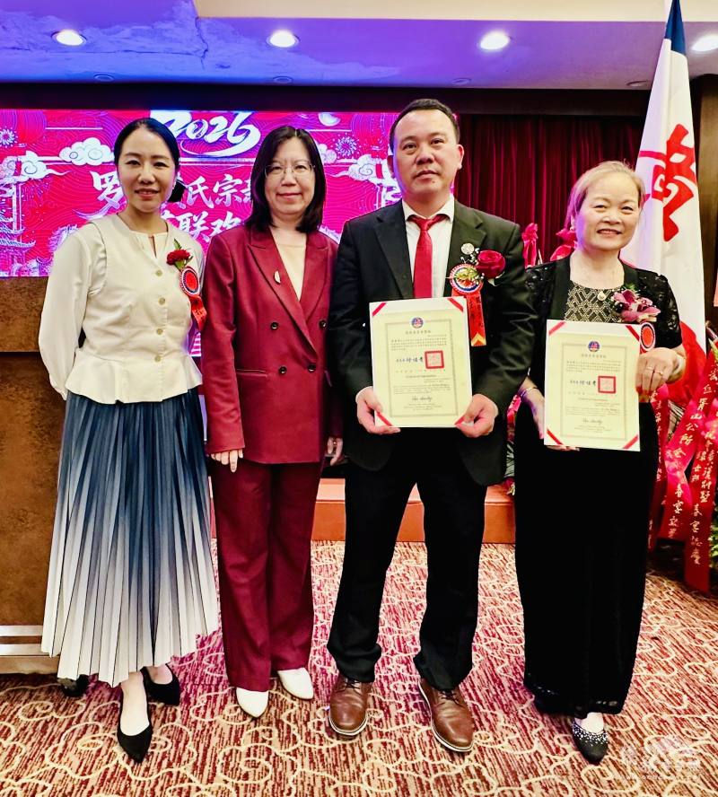 羅省黃氏宗親會3月28日於該會所舉辦春節祭祖典禮,並於同日舉行春宴,洛杉磯文教中心主任鍾佩珍偕副主任黃楷茗應邀出席。鍾佩珍表示,十分高興參加這場盛大的家庭聚會,並恭賀黃勇華當選主席,黃氏宗親會人才濟濟,為中華會館最大的宗親僑團之一;期盼未來繼續支持洛杉磯文教中心,共同攜手團結合作。