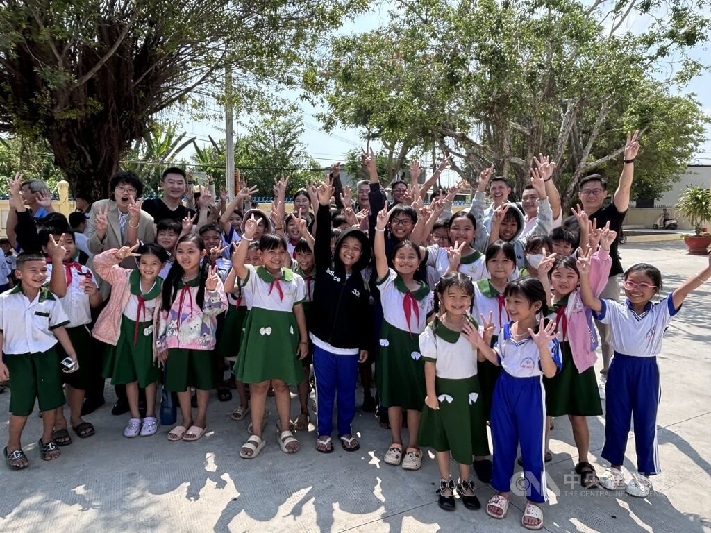 孩子正向、熱情,加上島上難得看到外國人,團團包圍參訪的台商成員,搶著擊掌、握手、自拍,「讓人備感窩心,看到小朋友的笑容,是很大的助力」。