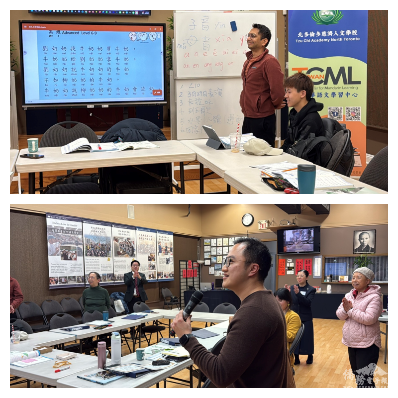 臺灣華語文學習中心(TCML)北多倫多慈濟人文學校第1期基礎A班及B班分別完成課程,3月29日舉行成人華語結業典禮暨頒發證書。多倫多文教中心主任藍柏青、副主任許彩鳳親臨現場觀摩上課,見證學員華語文學習成果。