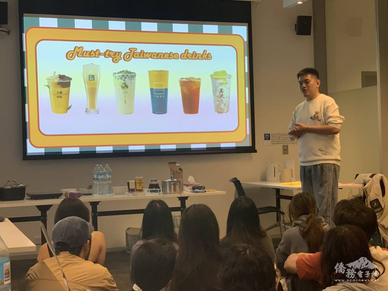 活動主持人陳亮宇介紹臺灣珍珠奶茶文化