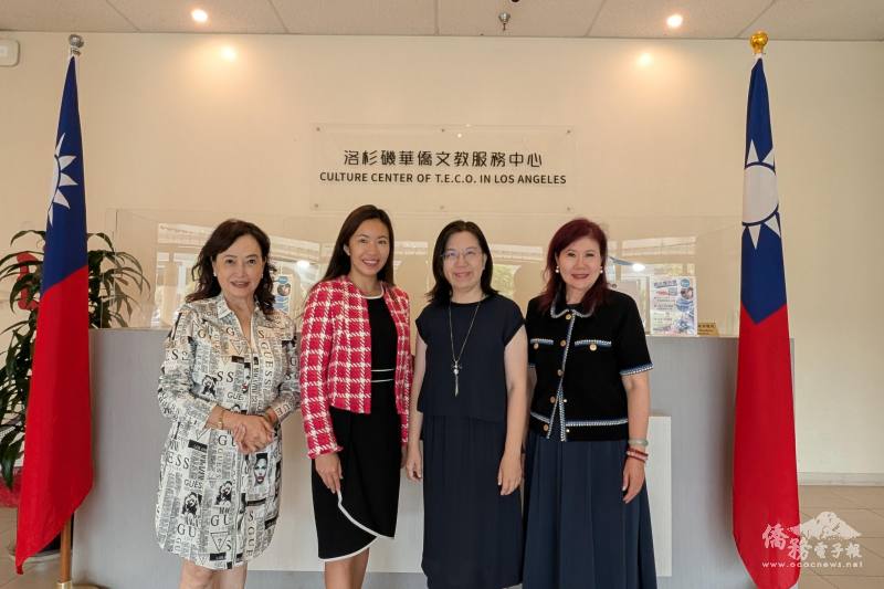 (右起)僑務委員劉煥君、洛杉磯僑教中心主任鍾佩珍、蒙特利公園市市長楊安立及世華大洛杉磯分會前會長林慧懿共促臺美文化與青年交流