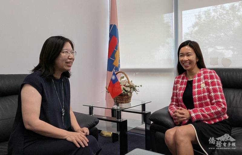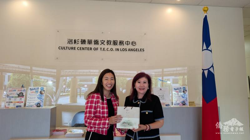 楊安立(右)訪洛杉磯文教中心,與鍾佩珍(左)暢談臺美合作新契機