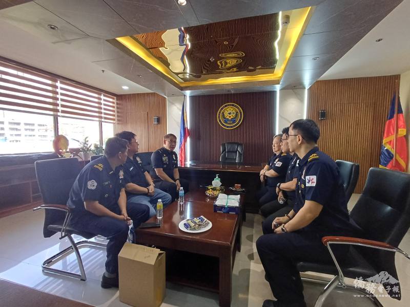 蔡彼得則感謝關張准將在百忙中接見,期盼促成曾赴臺受訓政府消防人員與菲華打火兄弟同仁交流,深化情誼與專業連結。蔣柏煌則介紹本屆研習營課程,涵蓋隧道與捷運搶救、煙層分析、地震搜救、電動車火災應對及繩索技術等,展現與國際接軌的訓練成果。雙方就提升民眾對爆炸風險認知、環保與減碳議題交換意見,並分享救援策略與訓練發展方向,強調國際合作與志願消防服務對建構韌性社區的重要性。
