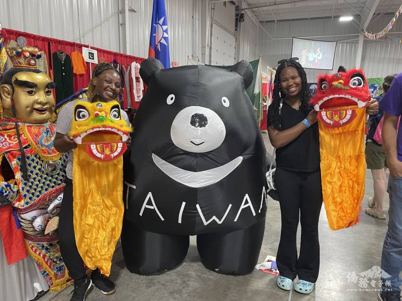 現場設置臺灣黑熊造型氣偶並展示電音三太子與舞獅元素,吸引民眾駐足拍照互動