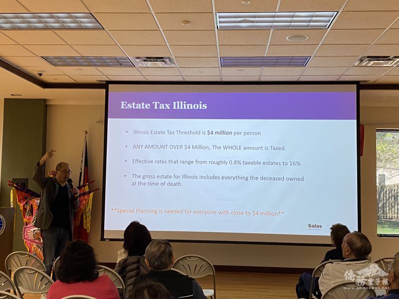 第二位主講人王振中,有20年法律實務經驗,執業領域包括移民法、商業法、遺產規劃等。他表示每一州法律不同,在講座中特別針對伊州法律及稅務提醒大家注意事項;他強調要做到有效的資產傳承需要事先規劃、諮詢專業人士,並儘早辦理。