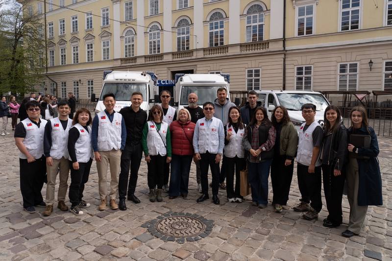 此次醫療團由中醫、心臟科、牙科及眼科等醫師組成,展開為期10天的行程。團長、國際醫療中心主任蔡維德與賑災基金會代表等人,22日在利維夫(Lviv)市政廳前廣場舉行簡單捐贈儀式。