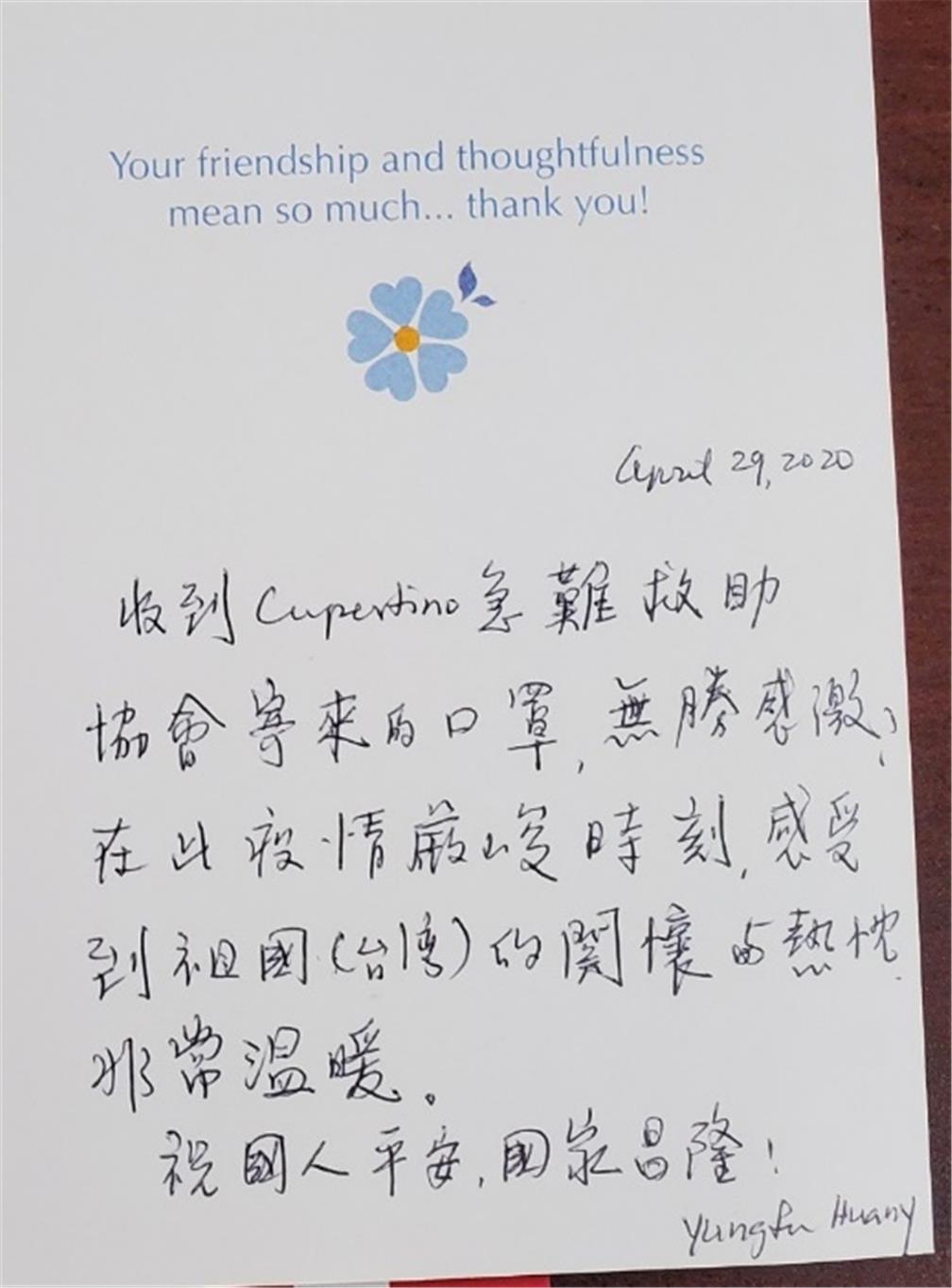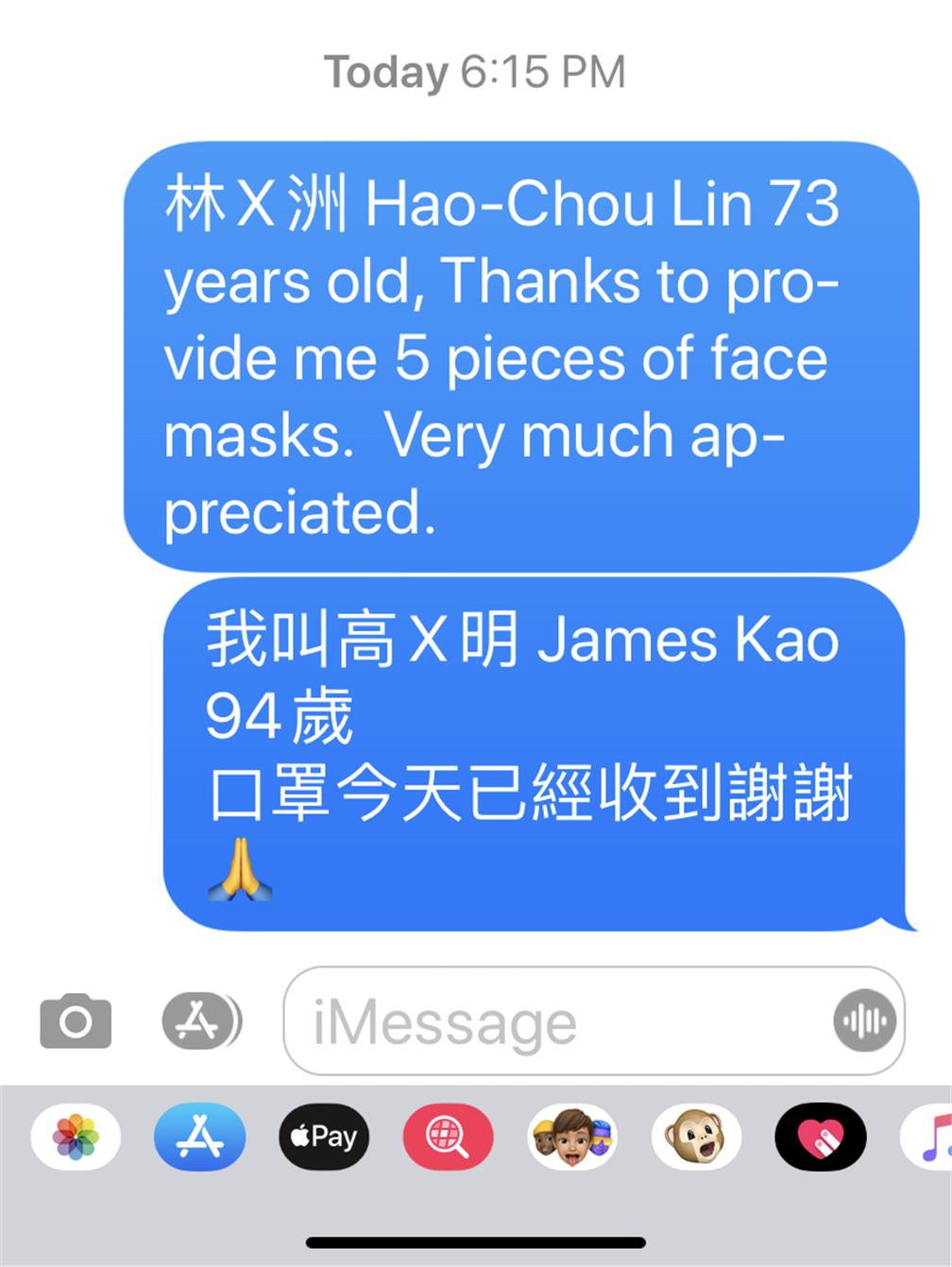 灣區長者收到口罩後,紛紛寄送謝卡和簡訊,感謝協會即時的同胞愛