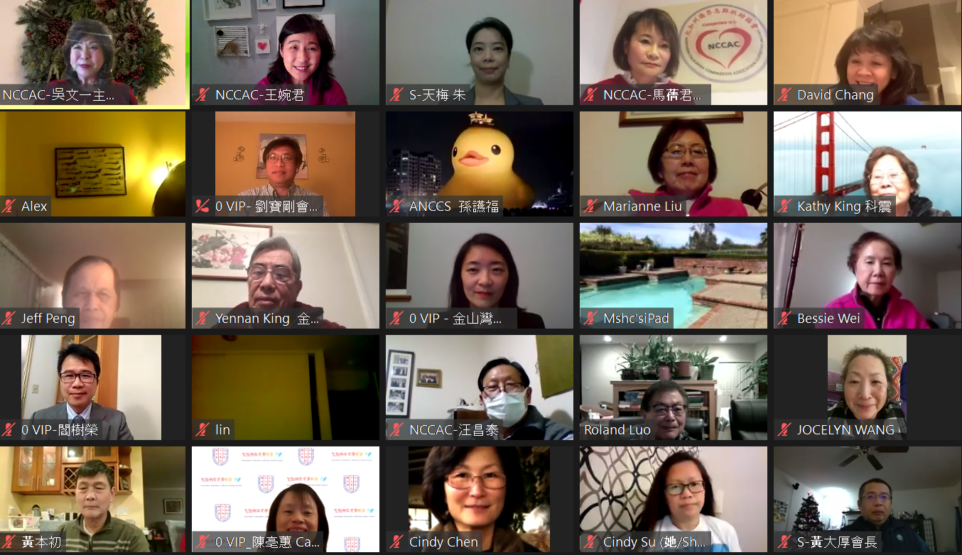 鑒於新冠肺炎(COVID-19)疫情嚴峻,入冬以來,疫情有過之而無不及,大家憂心忡忡,十分嚮往回到全球疫情控制第一的臺灣避疫,中華民國政府自109年12月1日實施「秋冬防疫專案」,針對回臺旅客加強防疫規定,為幫助計畫回臺僑胞對此專案之瞭解,北加州僑界急難救助協會-Cupertino中心特邀請駐舊金山辦事處領務組副組長朱天梅說明疫情期間如何申辦領務案件及秋冬防疫專案相關規定,北加州臺灣工商會會長/新義旅行社負責人黃大厚說明防疫期間臺美旅遊須知,協助僑胞瞭解赴臺之相關規定並為申辦事宜提供參考作法,駐舊金山辦事處處長賴銘琪、金山灣區文教中心主任閻樹榮、北加州中華耆英聯合會會長吳文一、北加州中國大專校友會聯合會會長劉寶剛、北加州中文學校聯合會會長陳亳蕙、北加州僑界急難救助協會-Cupertino中心會長馬蒨君、副會長王婉君、財務長汪昌泰等僑領及僑胞計有375位上線參加,Q&A有數十位僑胞踴躍提問,活動延長至10點結束,一致稱讚内容實用。