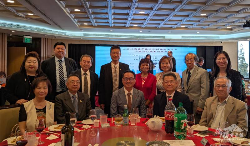 7月10日晚間,在僑委會科長賴貞利、洛杉磯文教中心主任鍾佩珍、副主任方瓊逸、陳品妤的陪同下出席洛杉磯僑界歡迎晚宴,駐洛杉磯辦事處處長紀欽耀、總統府國策顧問田詒鴻、林榮松,行政院政務顧問吳兆峯、陳玲華以及多位僑務榮譽職人員、各僑團代表及親友等逾三百人出席,場面熱鬧溫馨。