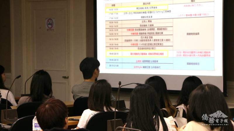 本次任務講習涵蓋僑胞證件辨別、臨機情況應變要點、國慶活動流程、交通與進出管制規定、現場引導與宣導工作等,近百位僑生出席聆聽。