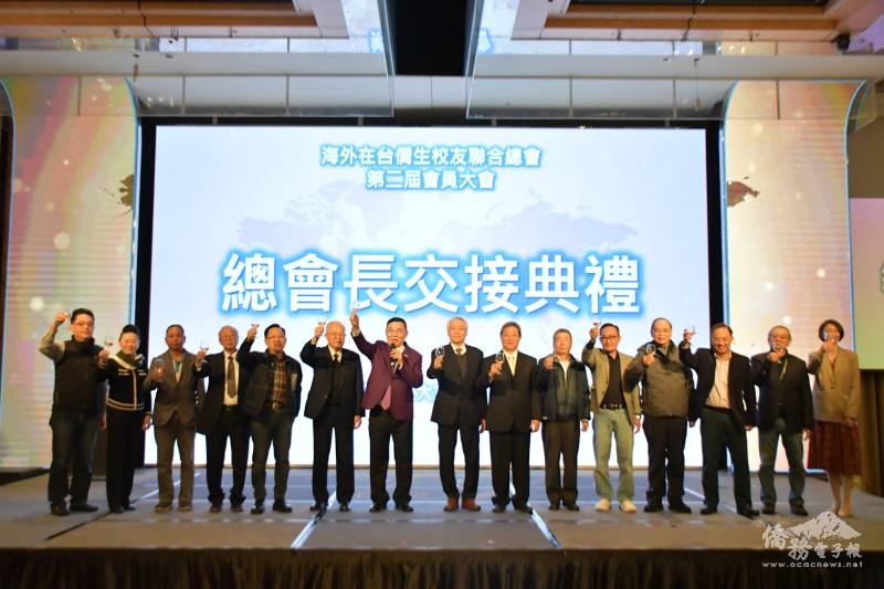 海外在臺僑生校友聯合總會1月11日於臺北舉辦「第一屆暨第二屆總會長交接典禮」,僑務委員會副委員長張良民受邀出席,並監交印信,第一屆總會長林狄傳承予第二屆總會長林齊國,完成交接儀式。