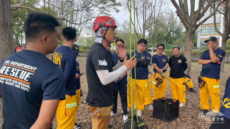 本屆研習營進階班自3月30日至4月2日舉行,課程內容包括隧道或捷運搶救、煙層特性、繩索救援、地震搜索救援及進階電動車火災應變演練等項目,透過情境模擬與實作操作訓練,有效提升學員面對複合型災害事故之應變能力與團隊合作默契。