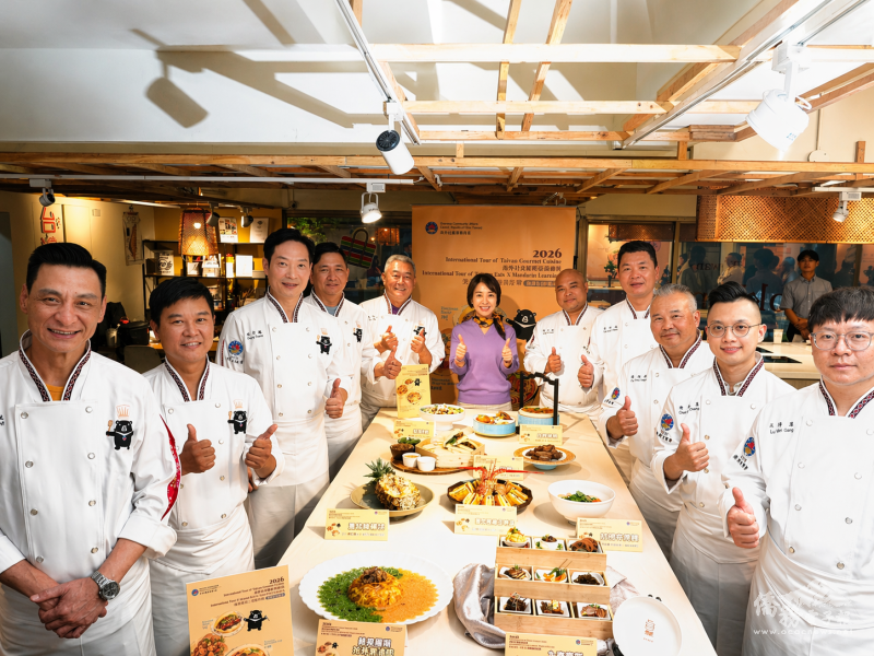 2026年「臺灣美食國際巡迴講座」及「臺灣好食X華語好學國際巡迴講座」開跑!僑務委員會於4月22日在臺北舉辦行前說明會,現場香氣四溢,從火焰刺蔥手撕烤雞,到客庄紅糟封肉、紅燒牛肉麵、鹽酥雞等接力上桌,將臺式辦桌與夜市風味,化為滿溢臺灣味的熱鬧展演。副委員長李姸慧出席,頒授聘書給18位廚師代表,期許巡迴講座順利,將臺灣美食推展至國際。
