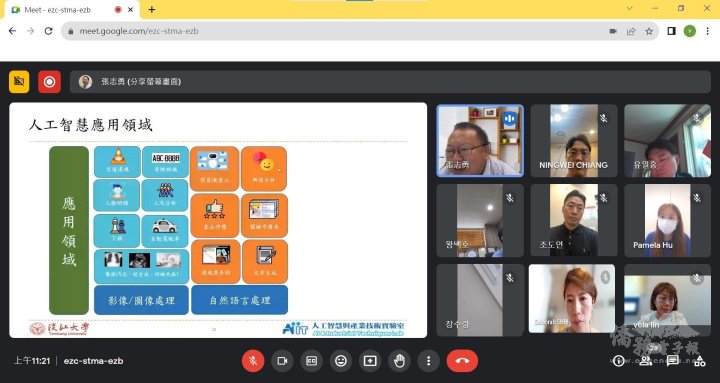 活動接續由淡大特聘教授張志勇主講「AI創新能力與產業運用」,就AI定義、AI人工智慧發展進程及產業應用等深入淺出進行介紹,內容相當精彩。本次線上專題演講,為擴大活動效益,除青商會成員參加外,並擴大邀請世華韓國分會、韓國臺灣商會總會等僑團共同參與,共有超過34人參加,活動迴響熱烈。