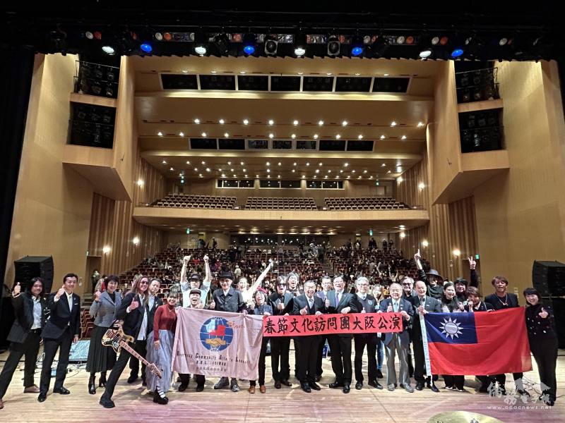 僑務委員會114年春節文化訪問團日前在日本大阪熱鬧登場,吸引關西地區各僑團、僑胞前來觀賞,大阪市議會議長竹下隆、大阪市議會日台友好議員連盟辻淳子會長及東大阪市議會野田彰子議員等友我政要、當地日籍友人共約800人來到現場共襄盛舉,共同見證臺灣豐富多元的文化魅力。主辦僑團大阪中華總會郭重信會長及駐大阪辦事處處長洪英傑致詞感謝僑委會再次遴派優質訪團來大阪演出,希望現場觀眾一起享受今晚的音樂盛宴。