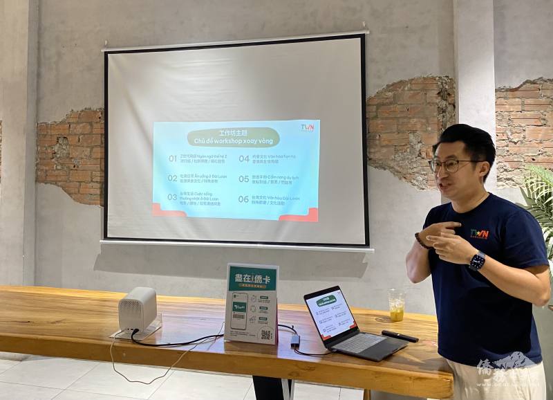 胡志明市「最在地的中文交流(TvvN)」社團4月4日舉辦臺越文化交流工作坊,結合文化脈絡與華文用語,邀請越南臺灣商會聯合總會青商會國際交流委員會主委林昕儒與兩地青年面對面交流。透過主題式分享,引領與會者探討臺越文化底蘊的異同,在互動中跨越隔閡,進一步凝聚文化認同與跨界友誼。