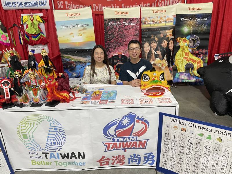 南卡哥倫比亞臺灣同鄉聯誼會主動參與活動,由聯誼會會長及志工主動負責現場臺灣文化攤位,展示臺灣在醫療、觀光、文化及經濟、科技等領域的貢獻。南卡哥倫比亞臺灣同鄉聯誼會會長陳浩鳴表示,現場提供文宣資料、文創小品及臺灣特色食品,讓參訪民眾透過多元感官體驗,深入認識臺灣在民主、醫療、經濟與文化等各面向的發展;林主恩則肯定志工長期在海外推廣臺灣文化的努力與付出。