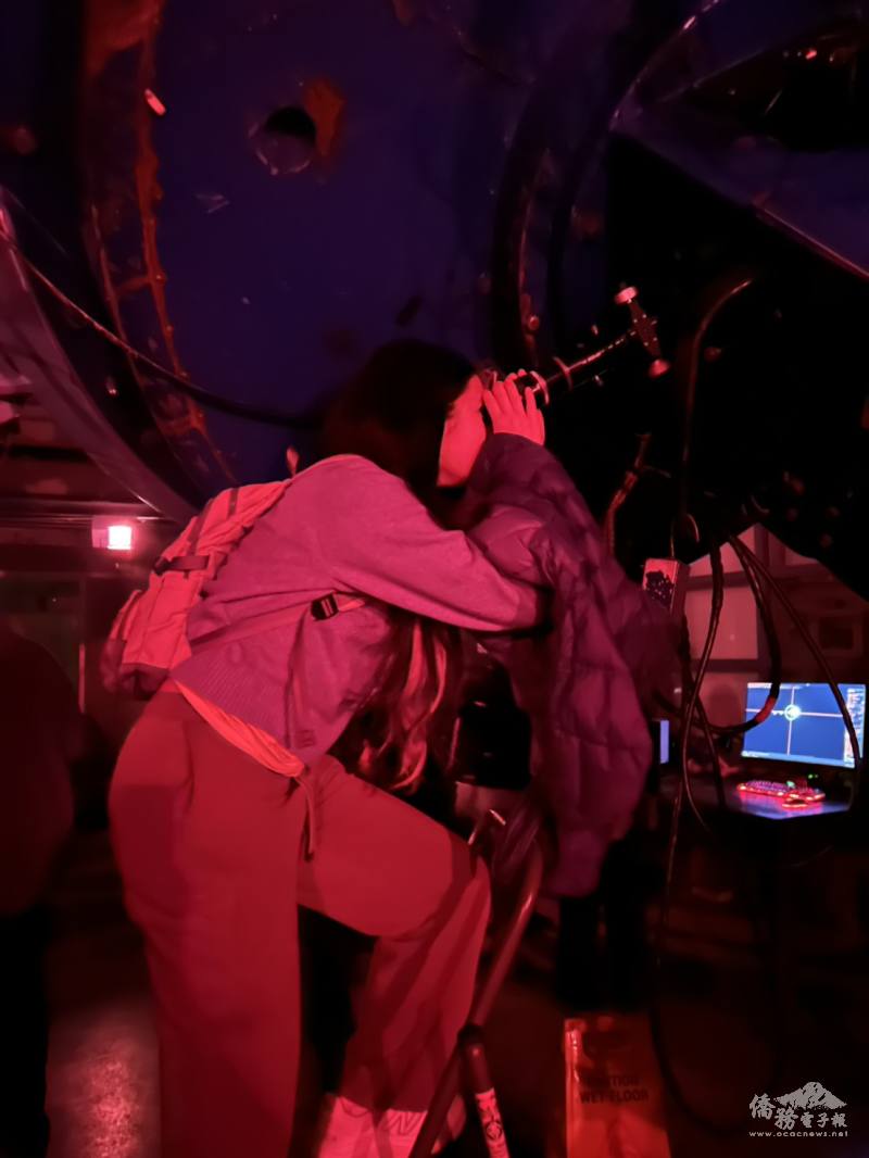 學員透過加拿大最大的74吋光學反射望遠鏡觀看木星及月球表面