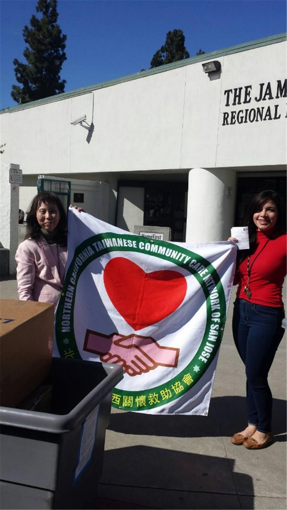 北加州聖荷西臺灣海外僑界急難救助協會在108年4月7日金山灣區僑學界紀念臺灣關係法40週年活動上,捐贈全新毛毯100條作為慈善團體急難救助之用(照片1、2),並由駐舊金山臺北經濟文化辦事處馬鍾麟處長代表捐贈給聖塔克拉拉縣弱勢團體Home First Homeless Center「第一家無家可歸者中心」的代表Ms Stephanie Demos(照片3)。全數毛毯並於4月10日在李漢文會長親自運送下送抵「第一家無家可歸者中心」,由秘書Jaclyn代表接受(照片4)並感謝北加州聖荷西臺灣海外僑界急難救助協會的善行。