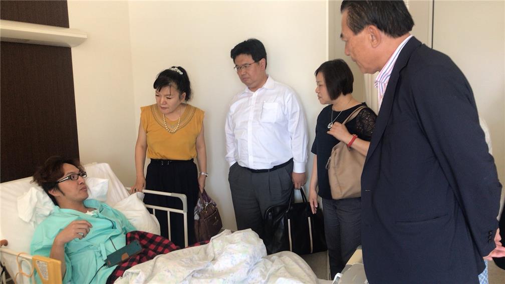 日本關東地區關懷救助協會黃宗敏會長、林裕玲副會長 (僑務委員)、鄭玉蘭副會長及事務局長陳姿陵在駐處領務組何仲民副組長及僑務組文君妃秘書陪同下,於107年7月24上午驅車4小時赴長野縣安曇紅十字醫院探視國人高先生,高先生係於7月初在家中昏倒送醫,家屬於7月18日致電代表處領務組尋求協助,除由關懷救助協會林副會長致電家屬,並親往探視慰問,以及陪同家屬聽取主治醫師說明病情,主治醫師表示病患復原狀況良好,7月26日再次進行精密檢查,倘無大礙即可出院,家屬感謝關懷協會及駐處之關懷,黃會長表示將盡力提供協助,家屬於醫院檢查完畢後,與該會連絡可協助事項。