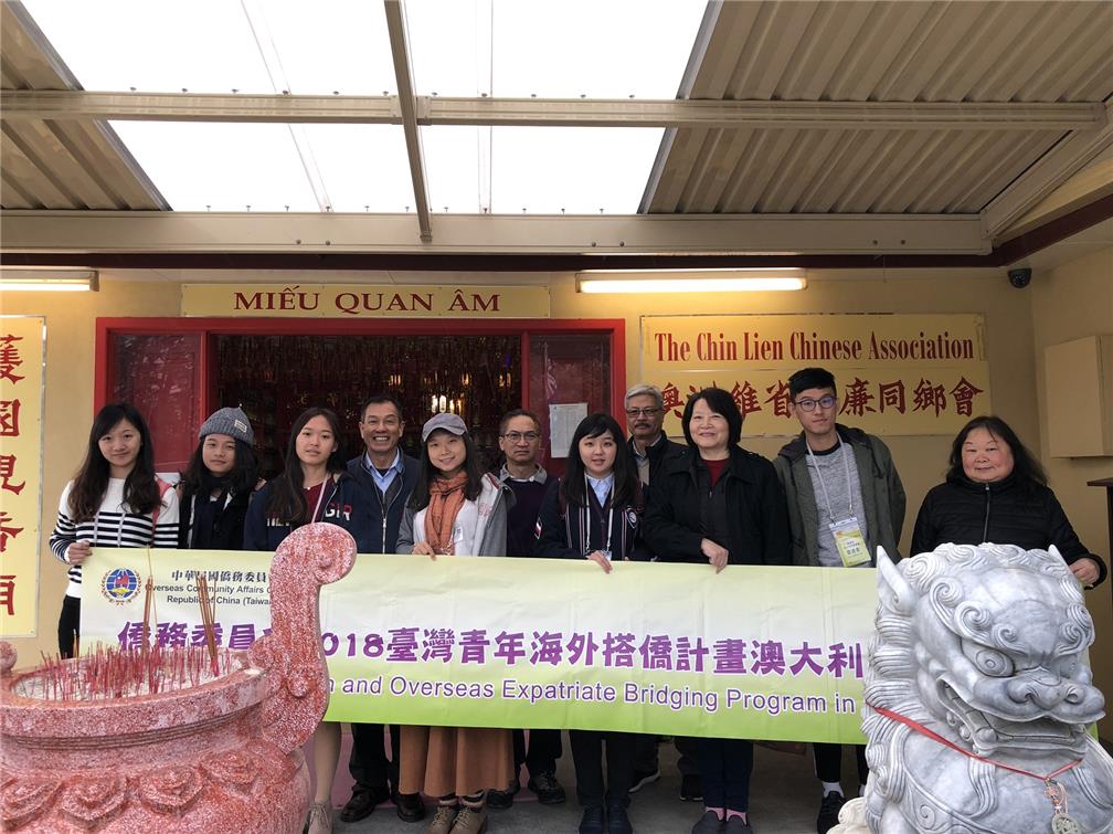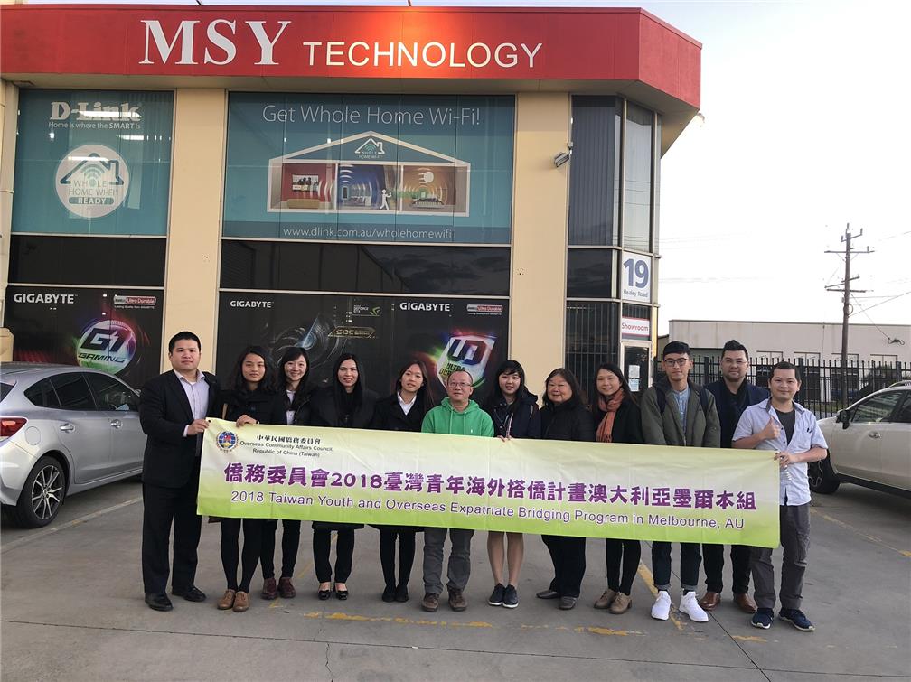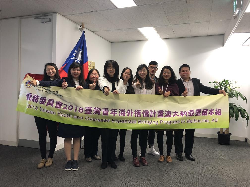 107年搭僑計畫墨爾本組6名學員於本年8月25日至9月1日赴澳大利亞墨爾本參訪見習,活動期間除拜會駐墨爾本辦事處及見習僑務組工作外;並拜會當地僑團(墨爾本臺灣同鄉會、佛教慈濟基金會澳洲墨爾本聯絡處、墨爾本中華青年會、墨爾本僑界關懷救助協會、墨爾本臺灣商會、國立政治大學校友會墨爾本分會、澳洲維省欽廉同鄉會、墨爾本中華婦女會、墨爾本客家聯誼會、帝汶留臺同學會)、僑臺商企業(MSY公司、Great Space Café)及拜會白馬市劉昱婷市議員、萬年興市陳小萍市議員;另參加大洋洲臺灣美食國際巡迴講座-廚藝示範教學、臺灣美食神話之夜市風情等僑社活動;以及前往維多利亞州國家美術館、墨爾本大學暨中文系師生座談、墨爾本皇家植物園、戰爭紀念館、維多利亞州議會等進行市政文化參訪。