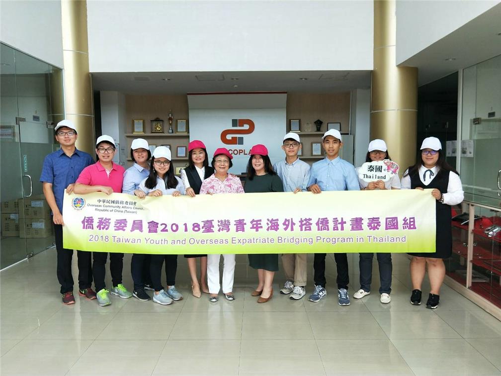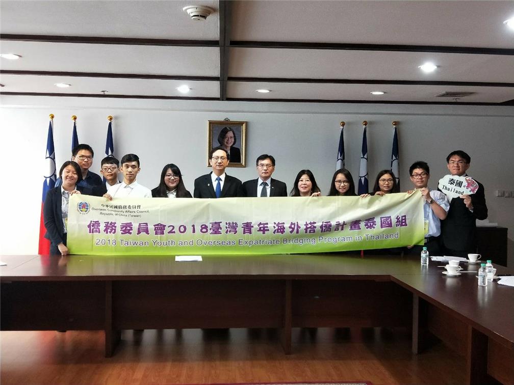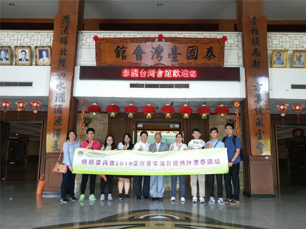 107年搭僑計畫泰國組8名學員於本年7月21日至29日赴泰國曼谷參訪見習,活動期間除拜會駐泰國代表處及見習僑務組工作外;並拜會當地僑團(泰國臺灣會館、泰國中華會館)、僑臺商企業(泰豐公司、DECOPLAS)及參訪大玲昌地區捐血中心;另參加大玲昌獅子會會長交接晚會、泰豐盃樂樂棒球國際錦標賽、泰國臺灣商會聯合總會理監事會、泰華華裔青年海外觀摩團結業聯歡晚會等僑社活動;以及前往當地火車夜市、泰國創意設計中心、曼谷唐人街、泰國暹羅代天宮、湄南河渡船與泰國佛教寺廟、陶瓷島、恰圖恰假日市場等進行文化參訪,與親手做泰國菜文化體驗。