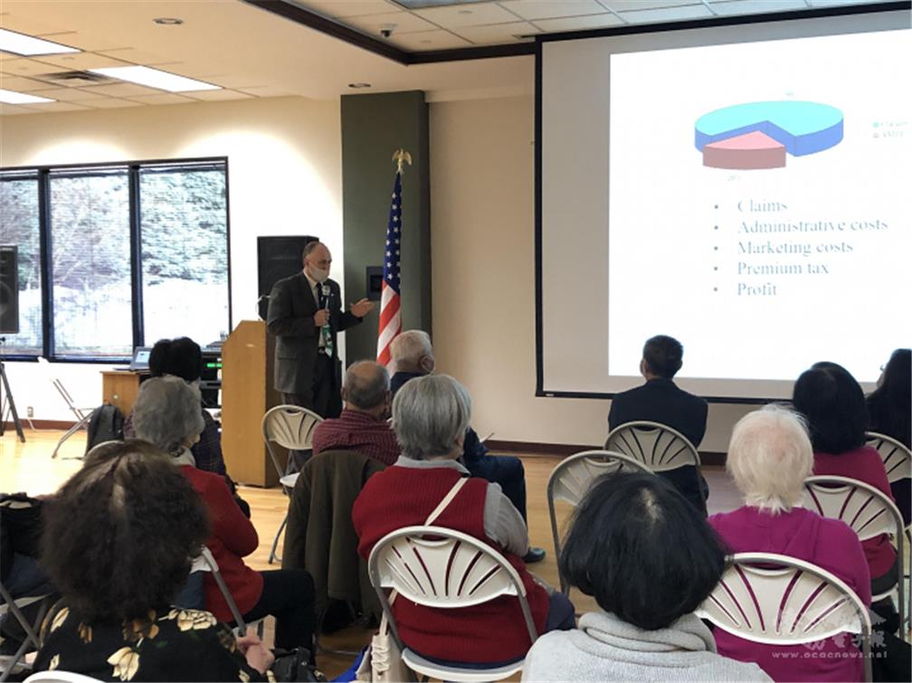 講座Mr. Charles Jurkus(中立)向與會僑胞說明健康保險應注意事項