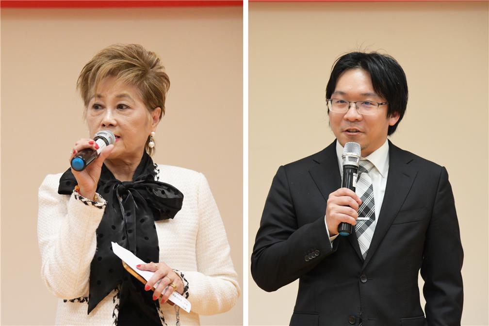 類延峰致詞(左) ; 陳莎莎交接印信給林辛承,類延峰擔任監交(右)。