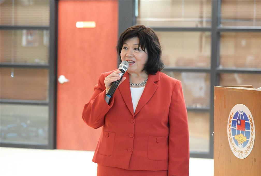 卸任會長陳莎莎致詞感謝大家踴躍參加,並介紹協會成立的歷史,針對旅外國人在海外遊旅、就學或就業及當地僑胞,遇到急難事件,協會在各方面都有專業人才,能夠適時地提供服務。