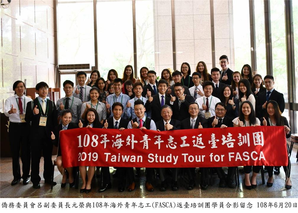 為強化與北美僑民青年之連結,僑務委員會於108年6月19日至6月26日辦理「108年海外青年志工(FASCA)返臺培訓活動」,邀請37位來自北美各地的歷屆優秀學員返臺參訓。學員年齡介於18至24歲,每一位都代表著中華民國臺灣未來的重要希望,期盼他們日後為臺灣開創更寬廣的國際空間。