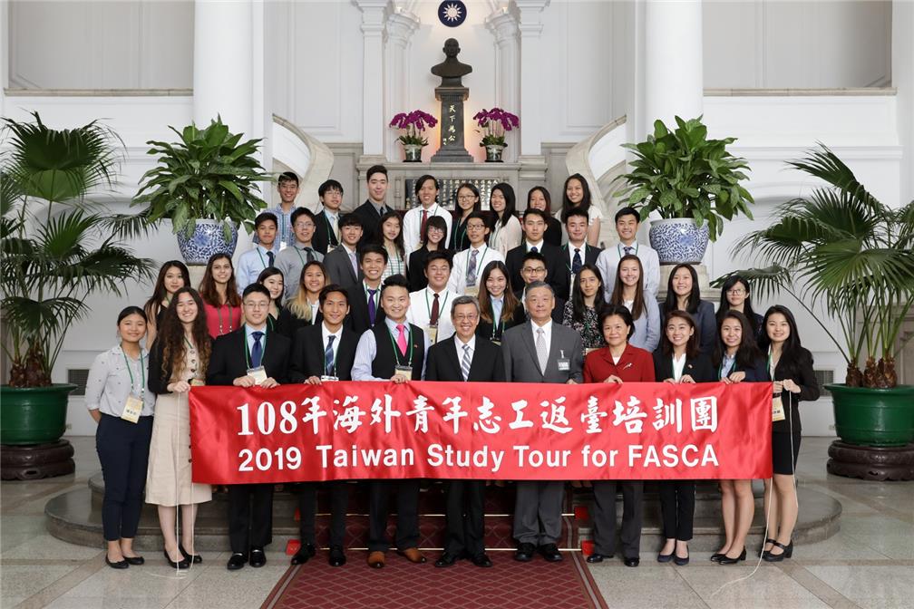 陳副總統與108年海外青年志工(FASCA) 返臺培訓團全體學員合影留念。