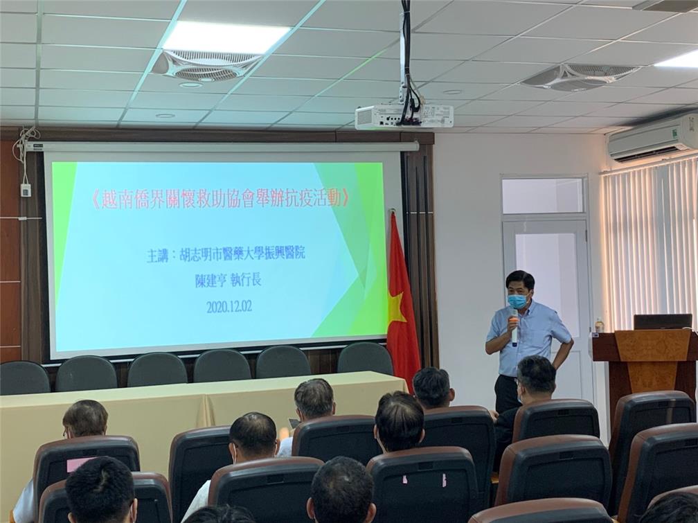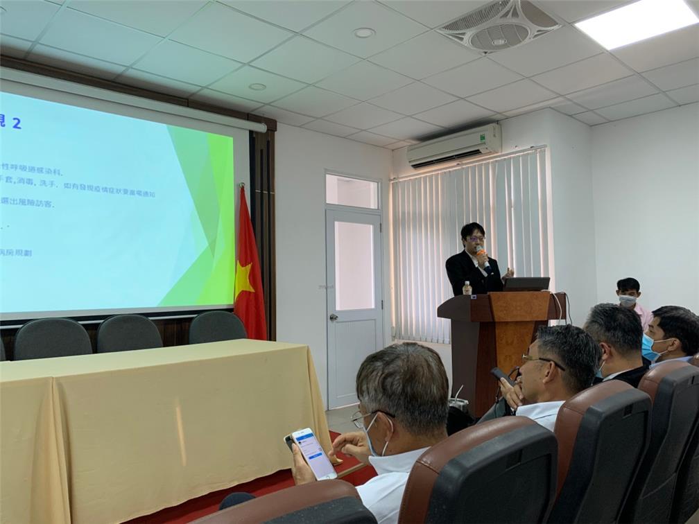 活動首先由張組長說明目前因應COVID-19肺炎防疫需要,臺越間專案包機最新檢疫規定及辦理進度。之後由胡志明市醫藥大學震興醫院趙副總裁禹翔進行專題演講,介紹COVID-19肺炎臨床表徵、感染途徑、臺商如何加強個人衛生防護避免感染,以及臺商企業實際防疫經驗等內容,與會臺商均表示相當實用,感覺受益良多。游組長也在會中介紹貴會「健康益友APP」政策,並鼓勵臺商踴躍下載使用。