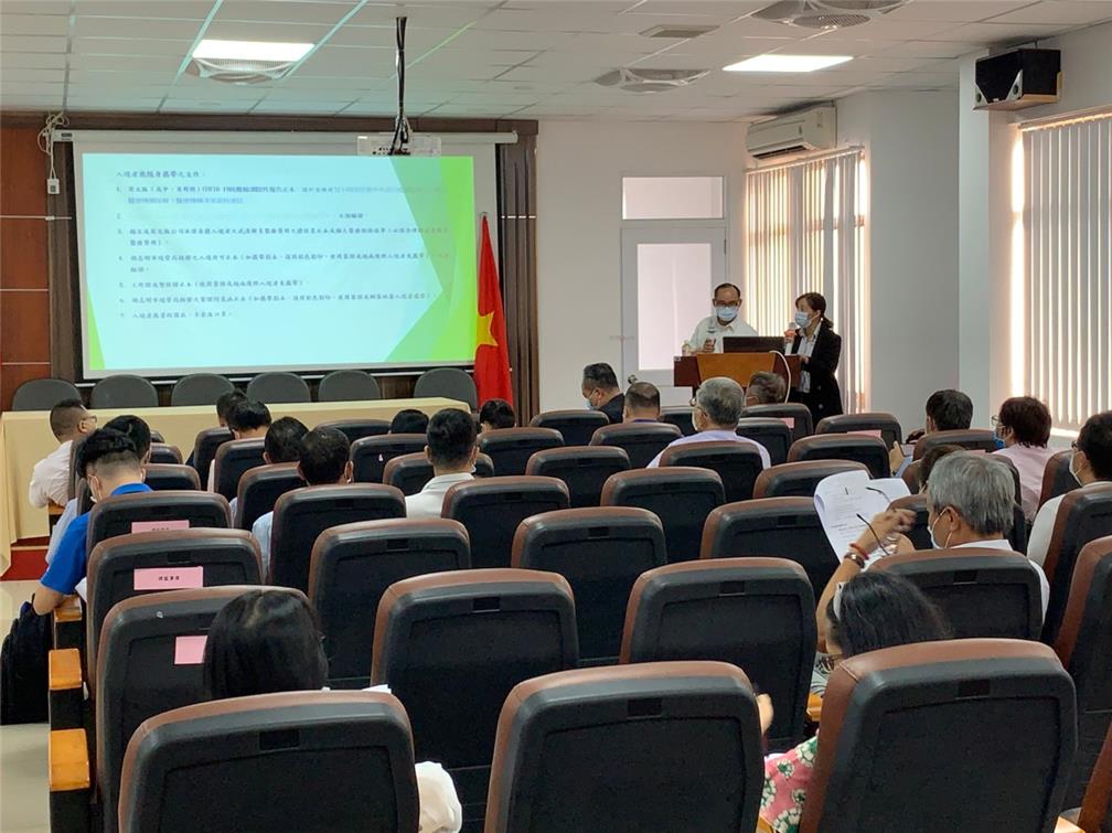 張正育(講臺左邊者)主講臺越包機相關防疫規定