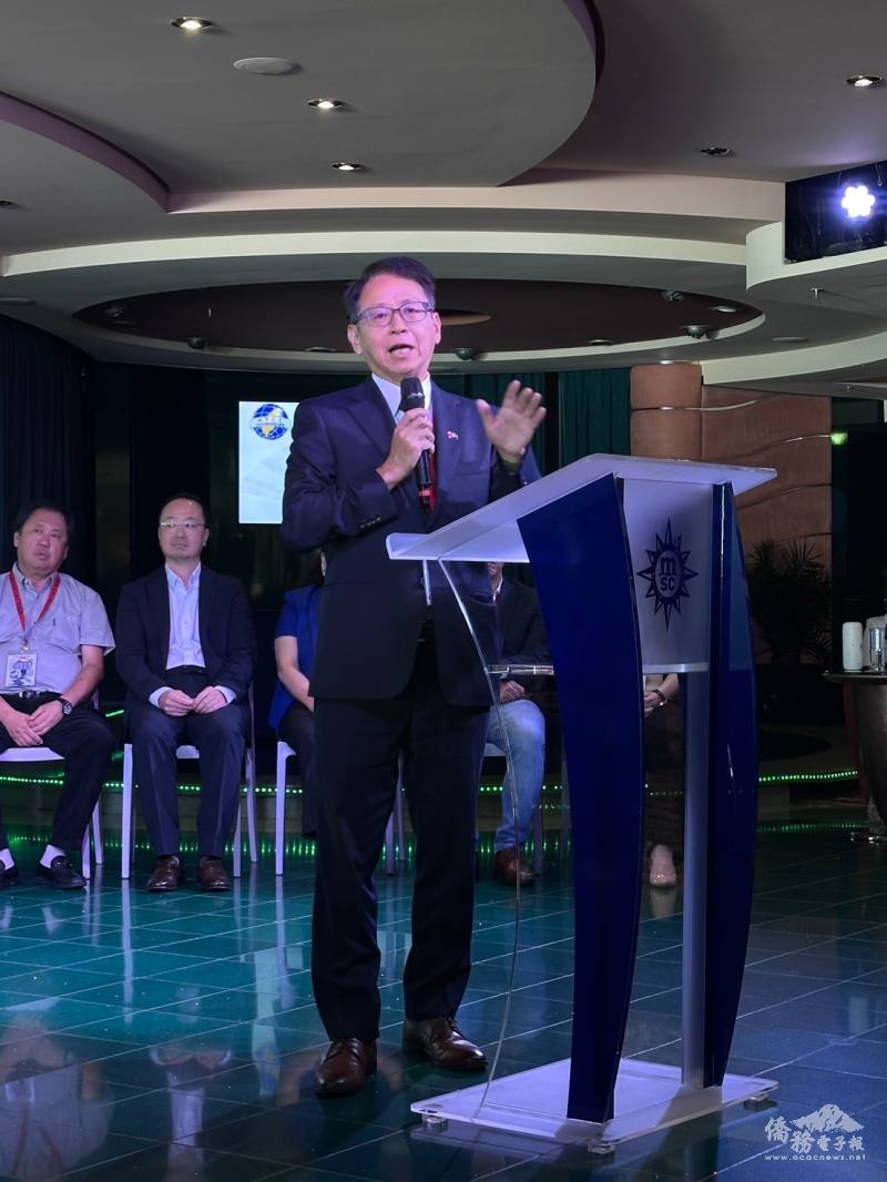 駐南非代表處經濟組組長羅清榮代表大使廖文哲致詞,祝福大會圓滿順利